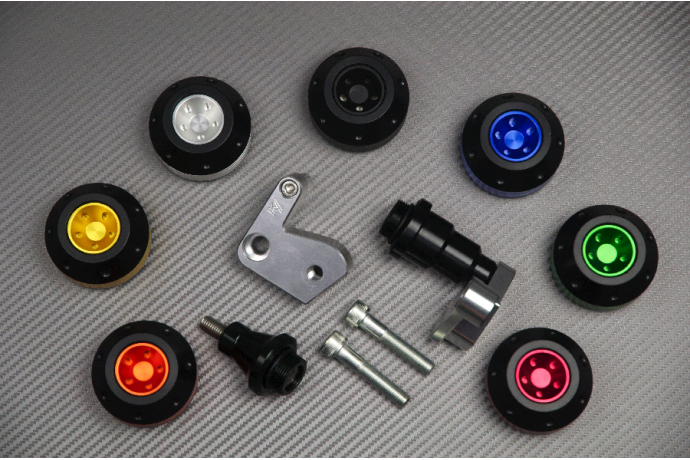 Paar Sturzpads, Crashpads, Schutzrollen aus eloxiertem Aluminium, spezifisches Modell für KAWASAKI :