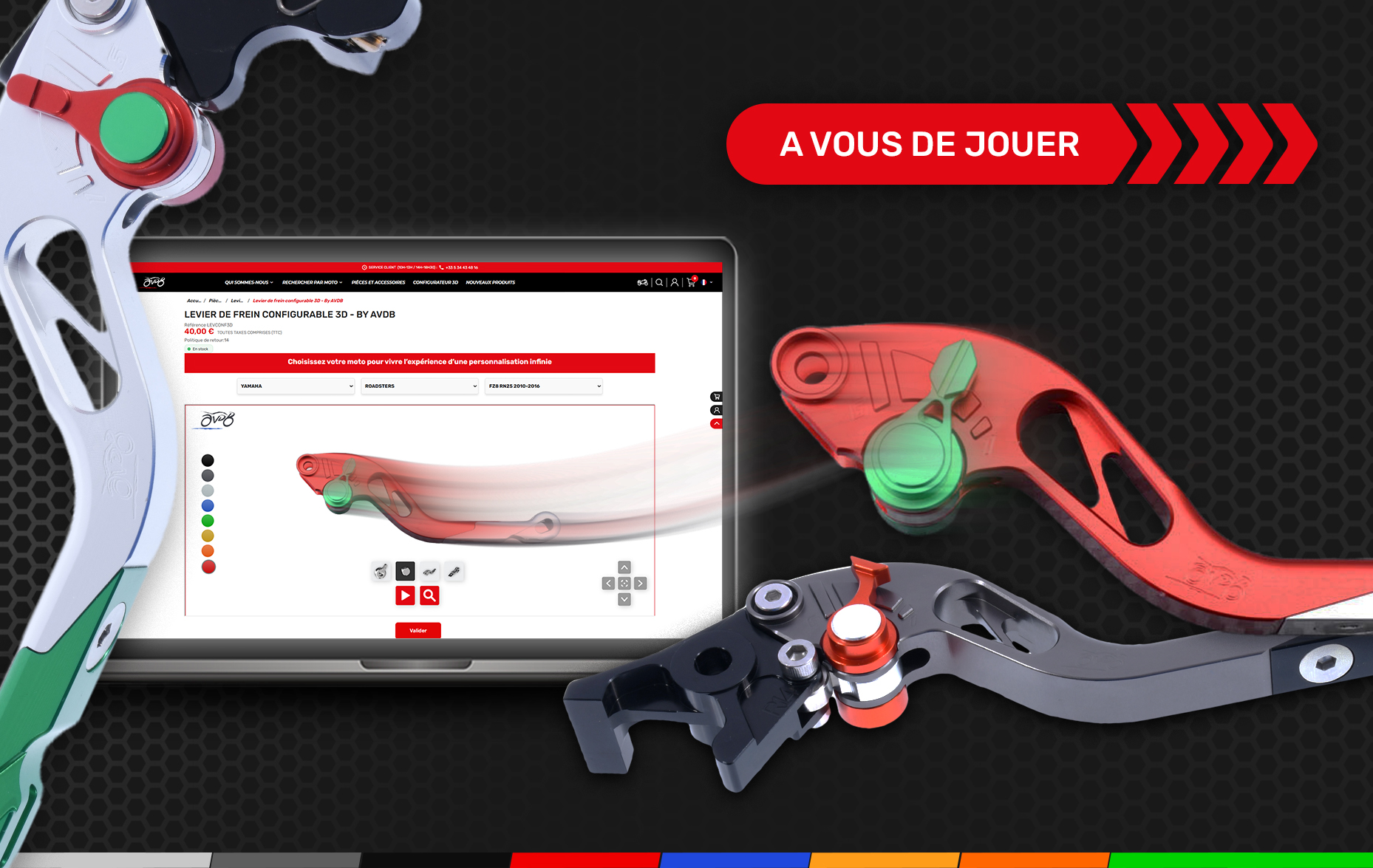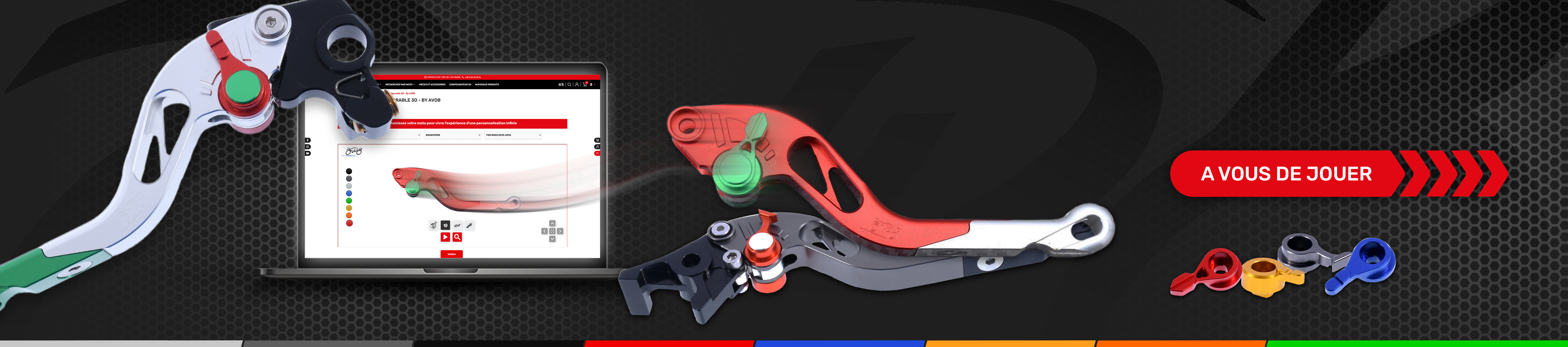 Nota : por el momento, sólo son personalizables las manetas de freno y de embrague, pero pronto habrá muchas piezas.