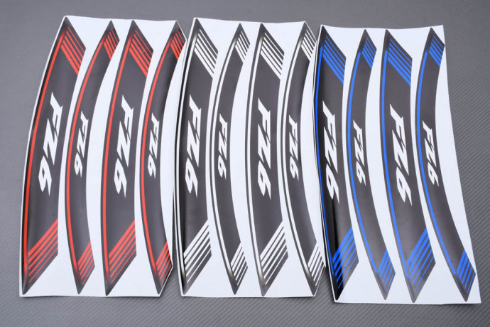 Le kit est composé de 8 stickers, pour vous permettre d’en placer 2 par côté de jante (de quoi équiper la moto complète). A savoir :