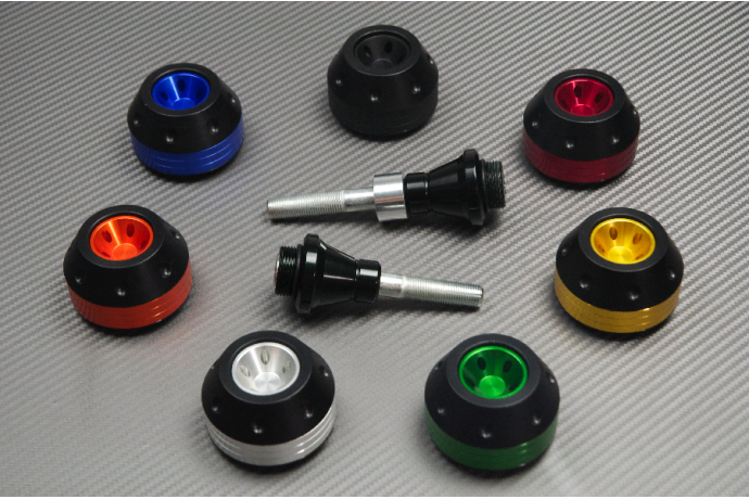 Ces protections anodisées sont de très bonne qualité de fabrication, en aluminium CNC taillé dans la masse. L'embout est en téflon avec déco en alu, proposé en plusieurs coloris pour un maximum de choix.