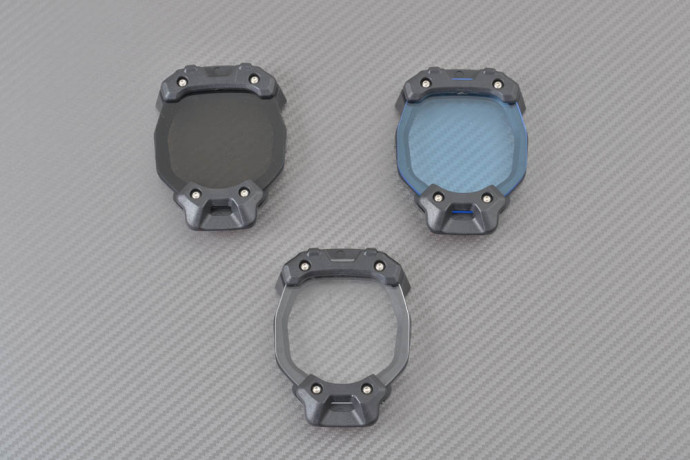 Nous proposons des contours de compteurs avec des liserets de différentes couleurs pour s’assortir avec les autres couleurs de votre moto, ainsi que des cerclages de phares spécifiques pour changer un peu du noir d’origine.