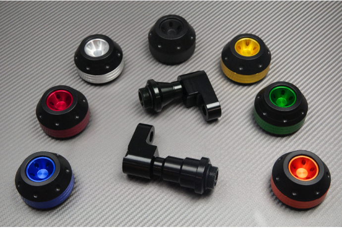 Ces protections anodisées sont de très bonne qualité de fabrication, en aluminium CNC taillé dans la masse. L'embout est en téflon avec déco en alu, proposé en plusieurs coloris pour un maximum de choix.