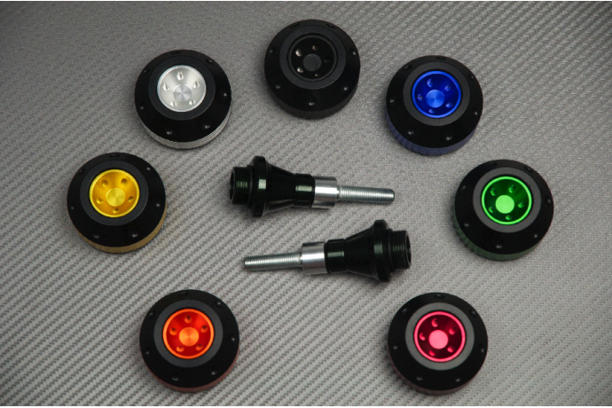 Ces protections anodisées sont de très bonne qualité de fabrication, en aluminium CNC taillé dans la masse. L'embout est en téflon avec déco en alu, proposé en plusieurs coloris pour un maximum de choix.