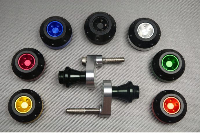 Ces protections anodisées sont de très bonne qualité de fabrication, en aluminium CNC taillé dans la masse. L'embout est en téflon avec déco en alu, proposé en plusieurs coloris pour un maximum de choix.
